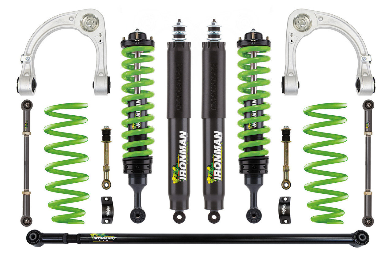 The Ironman 4x4 Foam Cell Pro Stage 4 Lift Kit suited for the fifth gen Toyota 4Runner combines upgraded on-road dynamics, dramatically reducing body roll and increasing stability with excellent off-road touring performance.